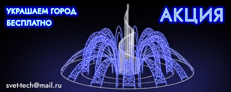Арки Шар украшают улицы Москвы Производство светодиодных фигур и Доставка по всей России (успешная отгрузка +монтаж в г. Абакан) Новогоднее светодиодное украшение катка в Москве Купить зимнюю гирлянду на деревья - теперь можно в Москве. Новинки "Спайдер-супер" IP65 Сегодня 18.11.2022 День Рождения Деда Мороза!!! Акция!!! Светодиодные деревья в Москве. Сакуры с оригинальной расцветкой Светодиодное новогоднее украшение - Арка цифры 2023 года в Москве Новый световой фонтан "Оазис" в различных цветовых решениях Светодиодные гирлянды на деревья ВСЕГДА популярны Новинки Светодиодные фигуры на елку "Конфетки" Скидки на Деревья Акция: Скидка до 10% ВЕСЬ январь на ВЕСЬ ассортимент Светодиодные перетяжки Акция. Скидки на гирлянды клип-лайт "Спайдер" Новость месяца Украшение города к 9 мая! Скидки 15% на светодиодную бахрому Скидки на Световой Занавес «Дождь» Скидка на Светодиодные Фонтаны Распродажа - светодиодные фейерверки и салют-шары Смотреть все новости