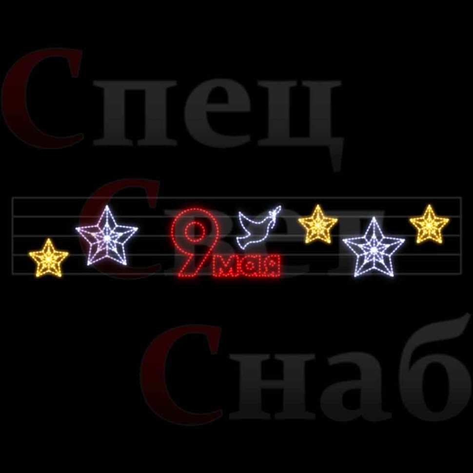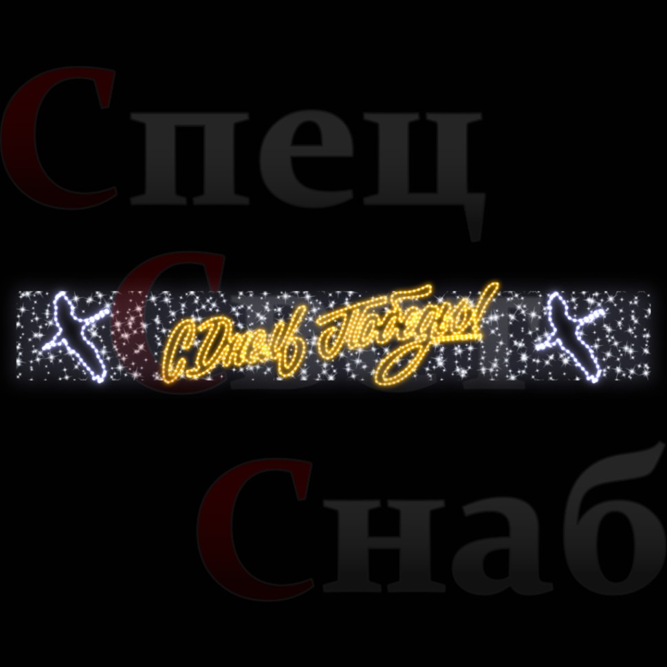 - Персональные перетяжки могут быть более адресными. Например, георгиевские ленты, красные звезды, изображения вечного огня, голубей мира. Это добавляет украшениям конкретики и глубины.