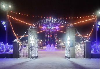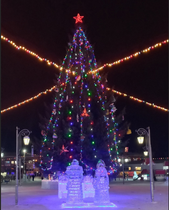 Не первый год наши дорогие и уважаемые партнеры. Перетяжка "Сновым Годом", консоль "Снежный фонтан", макушка на елку