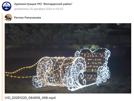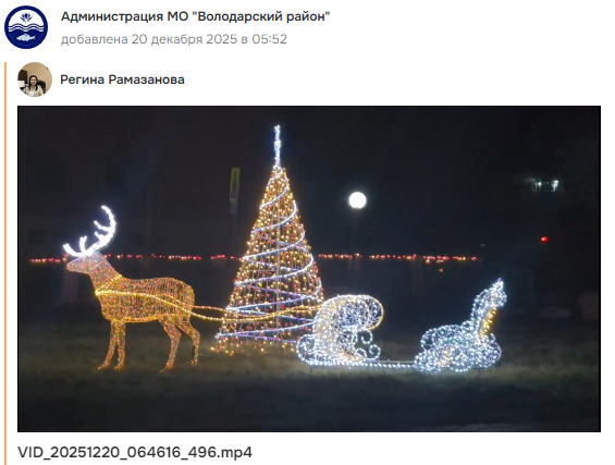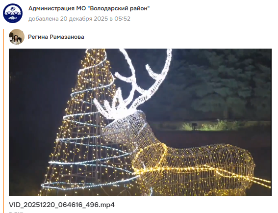 Продолжаем подводить итоги прошлого года. Администрация МО "Володарский район" 22 января 2026 Астраханская область, поселок Володарский. Елка, олень, сани. Сказка на траве Всем офисом, затаив дыхание, смотрели ваше видео